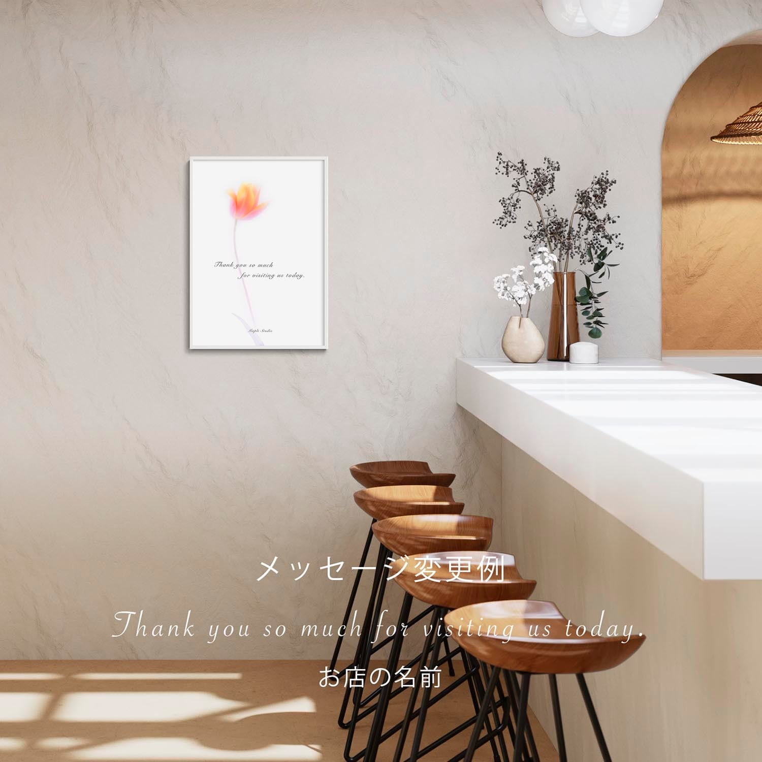 お客様に対するメッセージ・お店の名前を入れたら、お店独自のポスターにもなります。お花の好きな人や大切な人に、メッセージ入りのポスターをプレゼントしてはいかがでしょうか。
