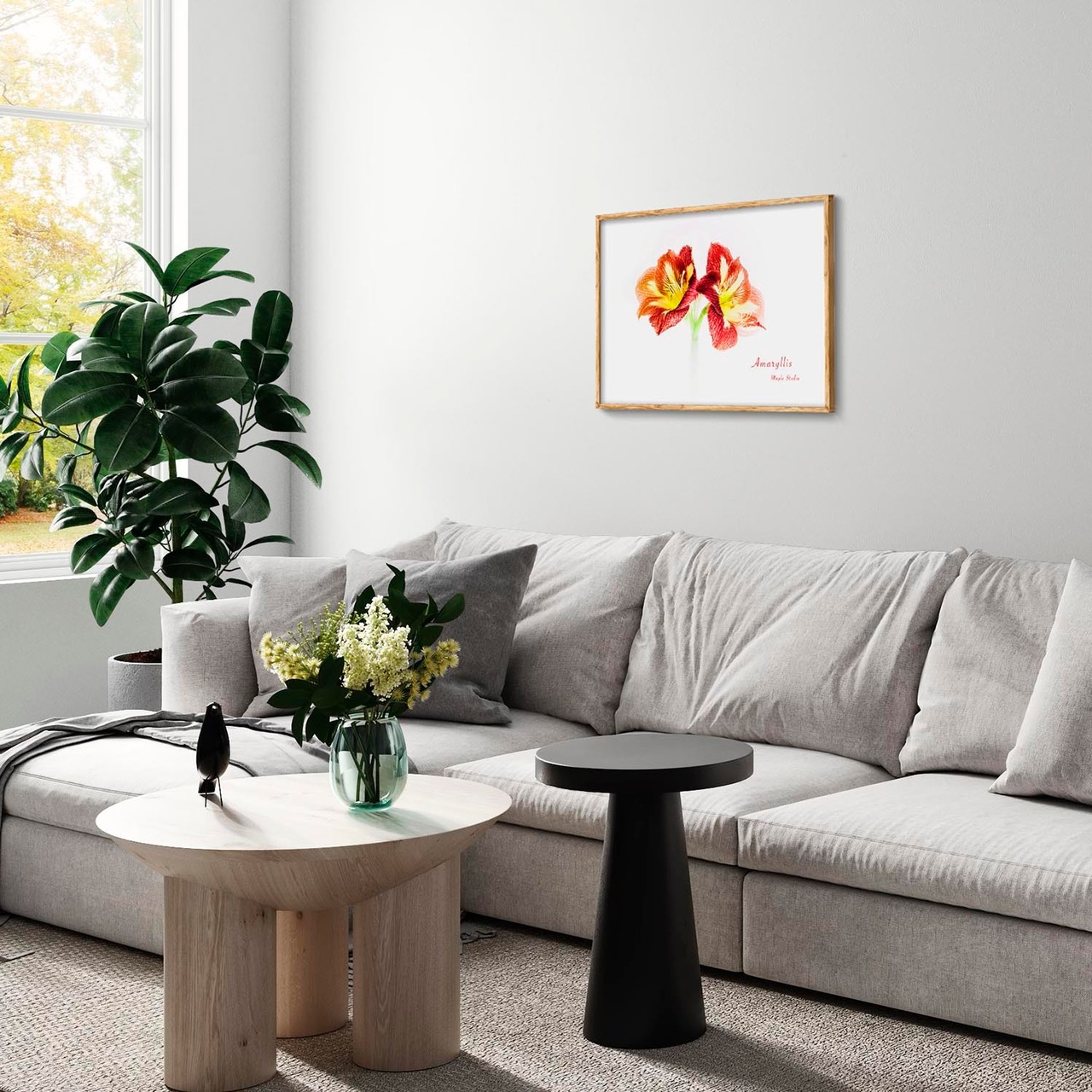 アマリリスは「誇り」「気高さ」「情熱」を象徴する花として知られ、その存在感は強く、インテリアのアクセントとしても非常に効果的です。